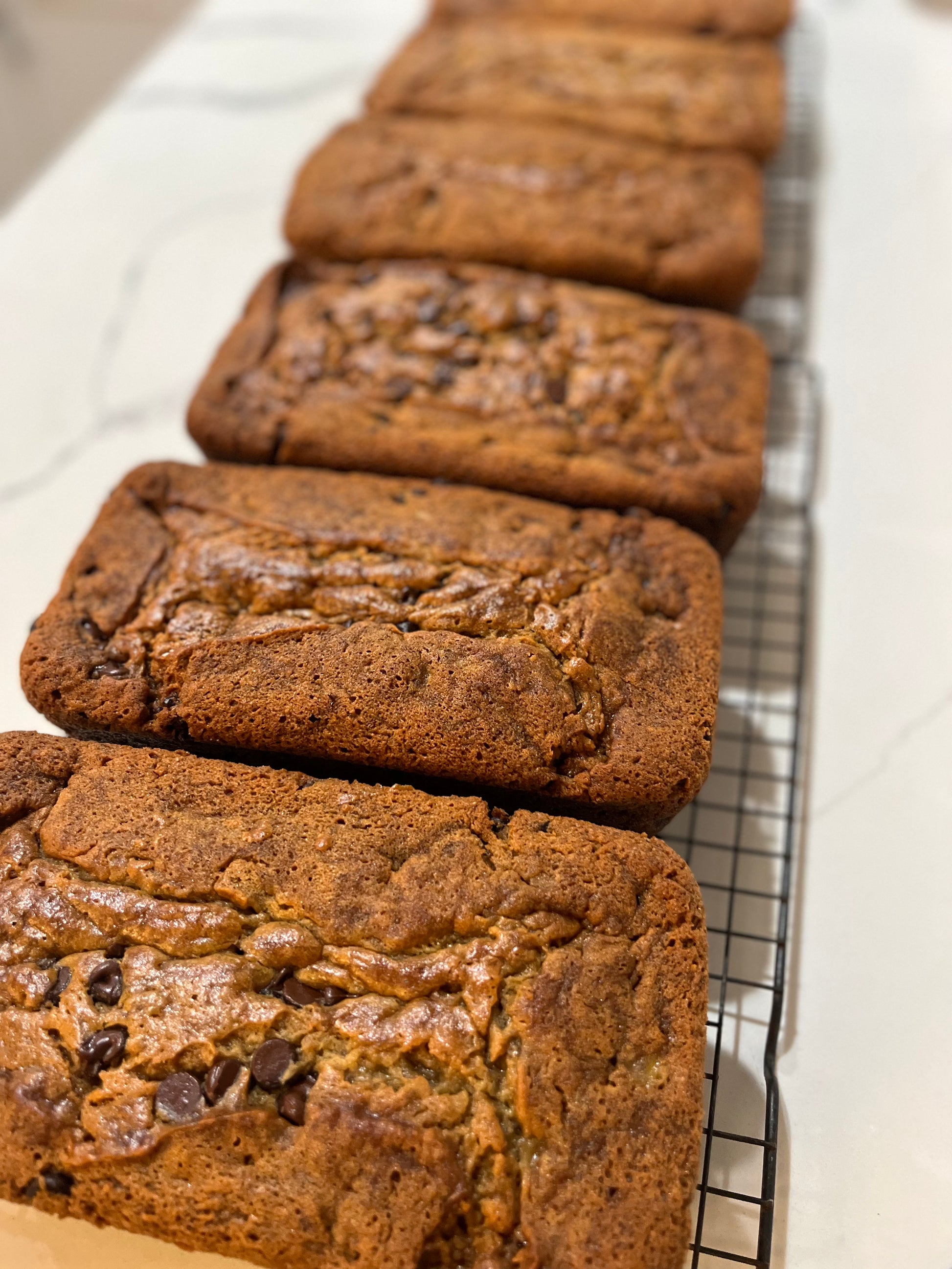 Chocolate Chips pour into this classic bread, may be substituted with nuts.