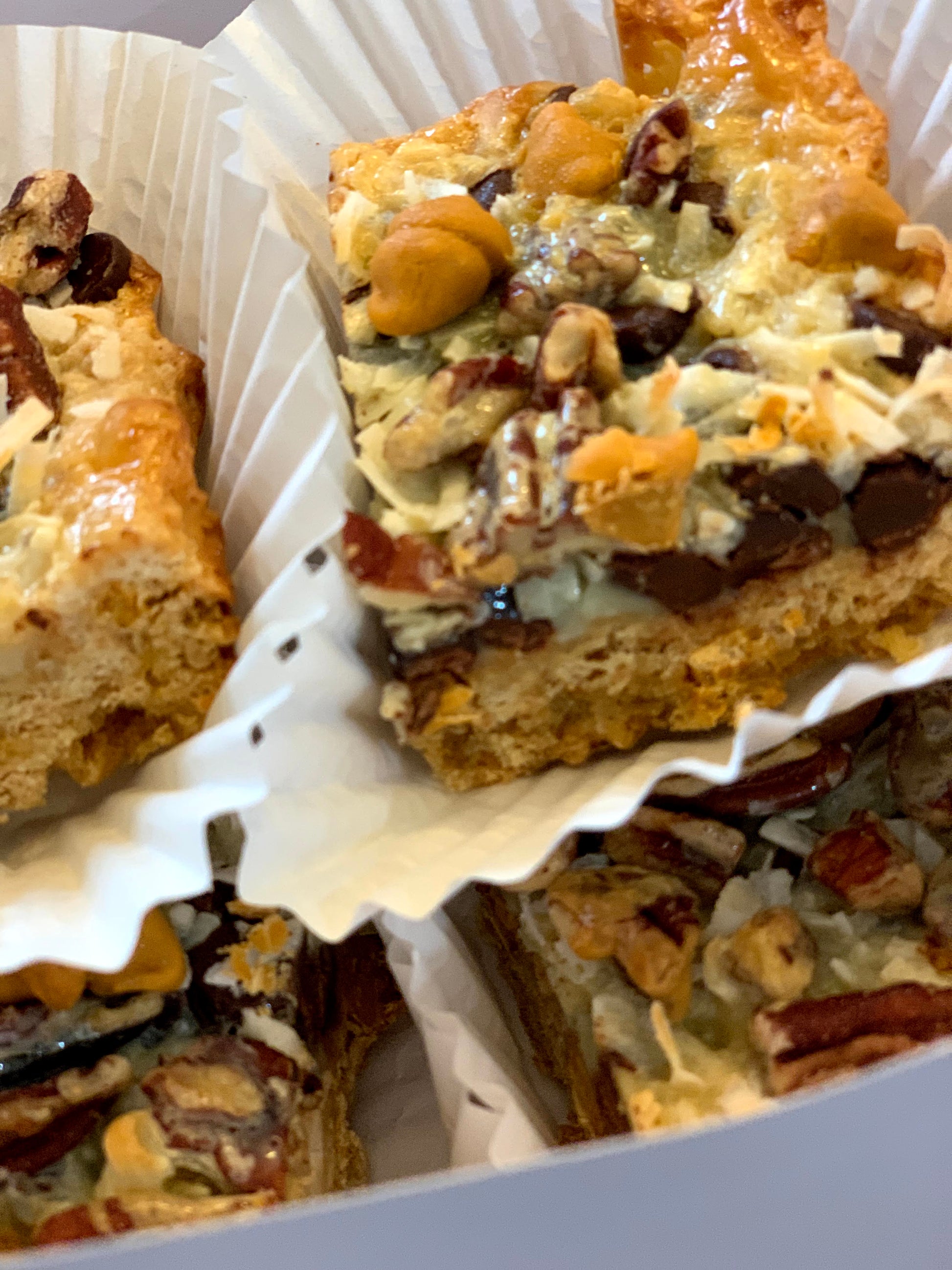 Blondie bar with coconut, pecans, butterscotch, and pecans. Everything you love!